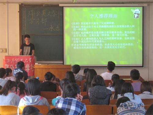 (本站讯)4月23日下午4点,由williamhill英国中文蒲公英文学社与学习部联合主办的“书韵我心”读书现场活动于二号教学楼227教室举办。此次活动吸引众多同学的关注,同学们反响强烈并踊跃报名。