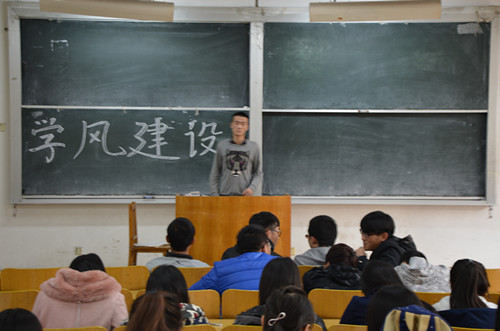 (本站讯)为明确学生在校期间本人与学校各自的责任,维护学校正常的教学和生活秩序,形成良好学风,11月20日下午,我院汉语言文学专业2014级2班的学风建设主题班会在二号教学楼216教室开展。