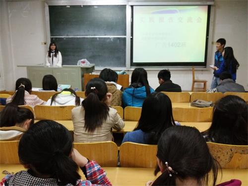 中本1401班团支书简要介绍班级同学寒假社会实践的活动情况。随后,班级同学主动发言,进行经验交流。同学们认为,此次寒假的社会实践活动,是提高大学生素质的重要手段,它有助于大学生接触社会、了解社会。同时,社会实践也是大学生学习知识、锻炼才干的有效途径。
