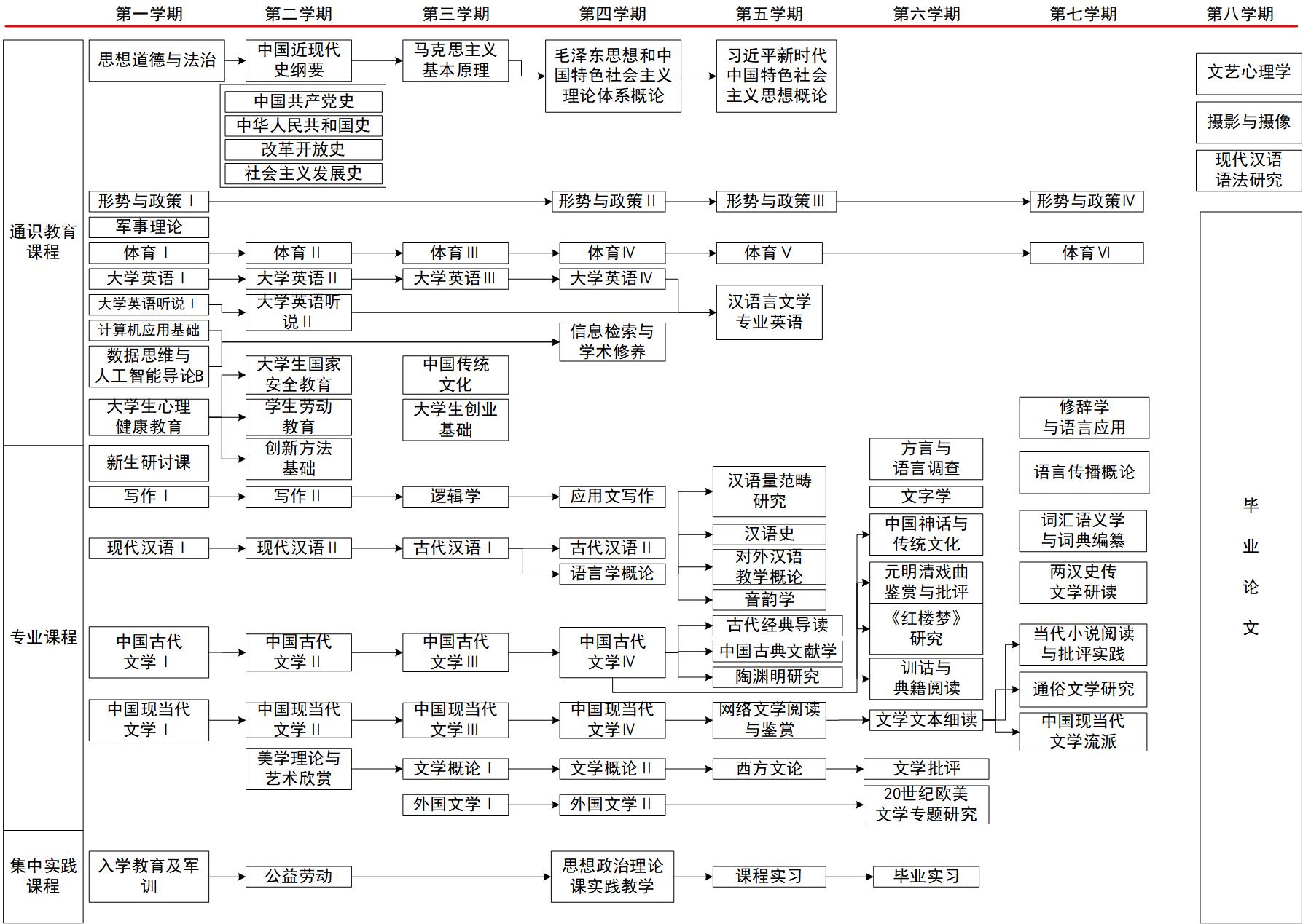 2-3[专业素质]具有较高的人文素质,了解汉语言文学与其他社会科学、社会实践的相关性,对学习科学相关知识有一定的了解。