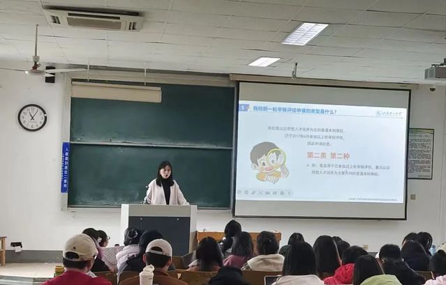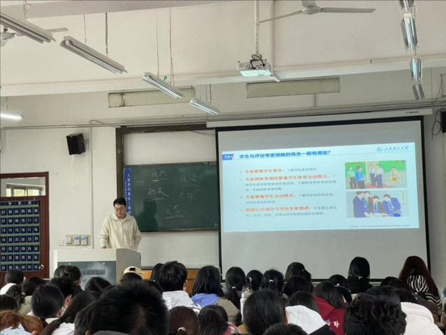 会上,辅导员向学生介绍本科教育教学审核评估的相关知识、开展目的及意义,带领学生重温校情校史,深入了解学校在学风建设及学生发展方面采取的有效举措,并着重就课堂行为规范、宿舍安全卫生、日常行为礼仪等提出了具体要求。