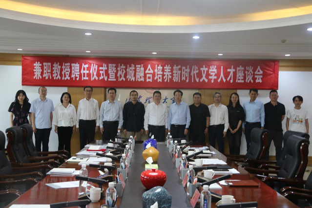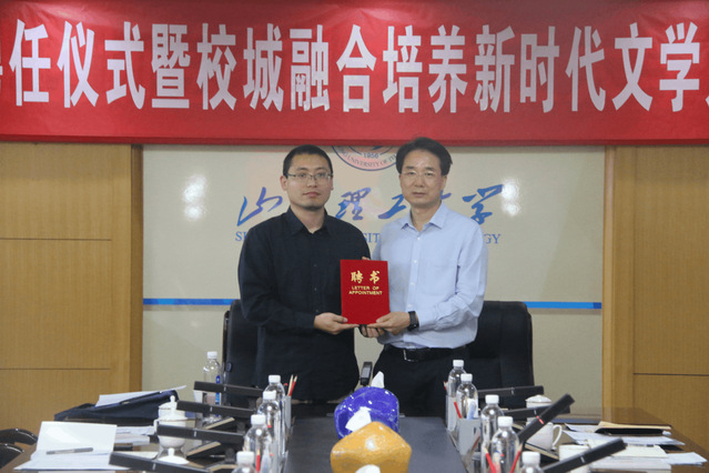 校党委常委、副校长苏守波致辞。他代表学校感谢市相关部门对学校发展和人才工作的支持。他谈到,校城融合发展,不仅是科技、产业、文化的融合,人才资源共享共用也是一项重要内容。引进著名作家魏思孝为我校兼职教授,相信将在文学院学科建设、文学人才培养等方面发挥重要作用,也将成为理工大与淄博市文联、作协与全国作家交流沟通的桥梁和纽带,在学校人才培养、学生美育和校园文化建设方面发挥更大的作用。