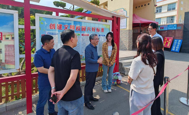 2024年5月16日至5月17日,williamhill英国中文党委书记李义勇、院长张艳梅、党委副书记刘晓东、副院长翟羽佳、中文系主任李贺、副主任张引及金梦鸽、辅导员唐磊,分赴周村和沂源各个实习学校看望支教实习生,了解其工作、生活情况,并为实习生送去丰富物资用品。