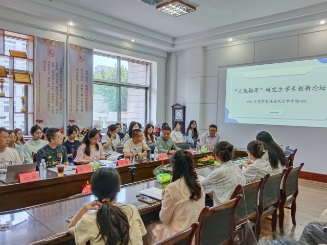 5月30日下午,我院第二届“文苑撷萃”研究生学术创新论坛(现当代文学与文艺学专场)在2号教学楼219会议室举行。本场报告会邀请李晓伟副教授、高媛副教授、秦洪亮博士、张引博士、初敏博士担任评审专家,2022级、2023级全体研究生以及2024级研究生部分新生参加会议。青年博士辅导员钟云瑞副教授主持论坛。