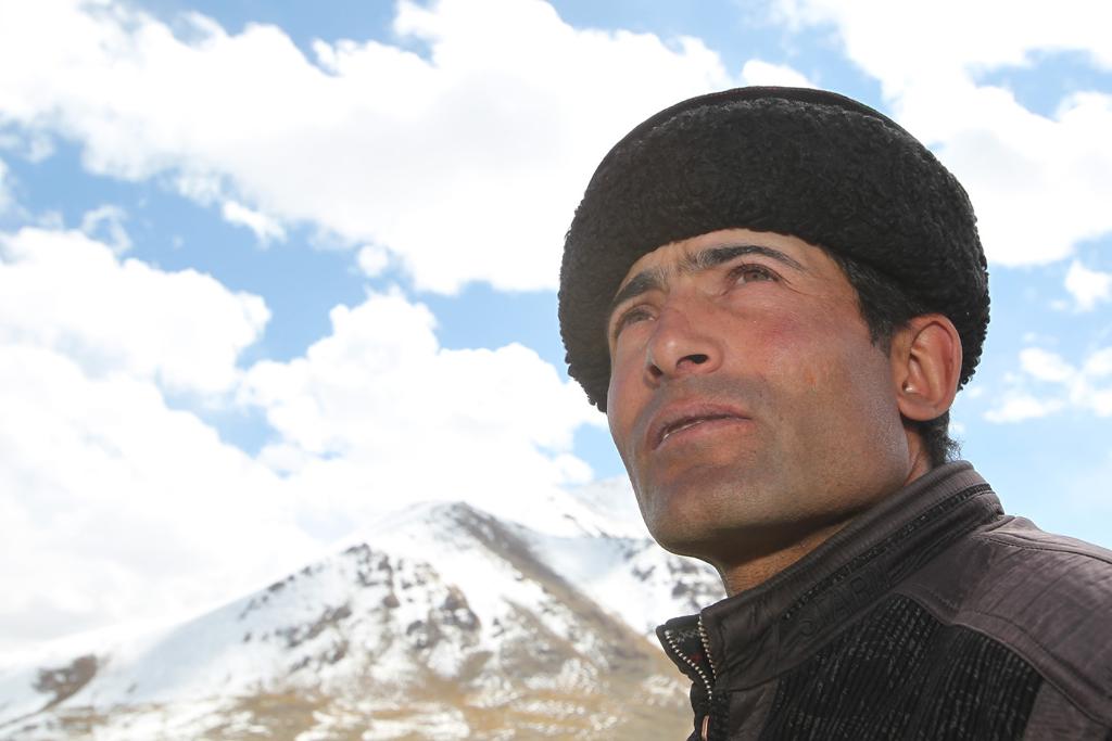拉齐尼·巴依卡在新疆红其拉甫边境线的巡逻途中(2011年9月23日)。