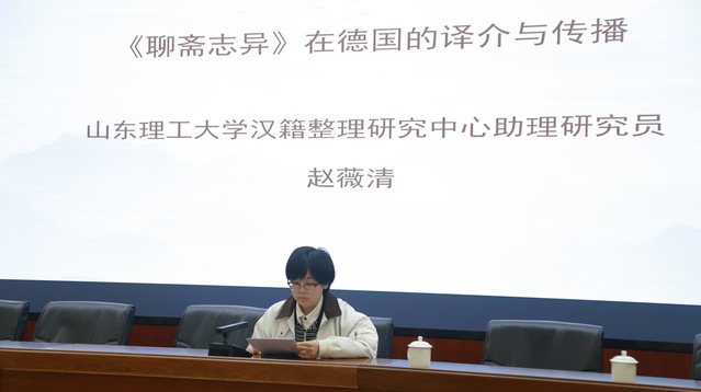 赵薇清同学作了题为“《聊斋志异》在德国的译介与传播”的发言。她认为由于译者的文学观念和文化背景不同,译者在译介《聊斋志异》时采取了不同的策略:译者在翻译过程中对文本进行了“无意识改写”与“创造性转化”;或者抱持了“忠实原文”的翻译态度,特别是对“不雅”情节未加删改;或者从“外来者”角度将中国文化译介进入德语世界,为读者提供了与其他版本不同的视角。