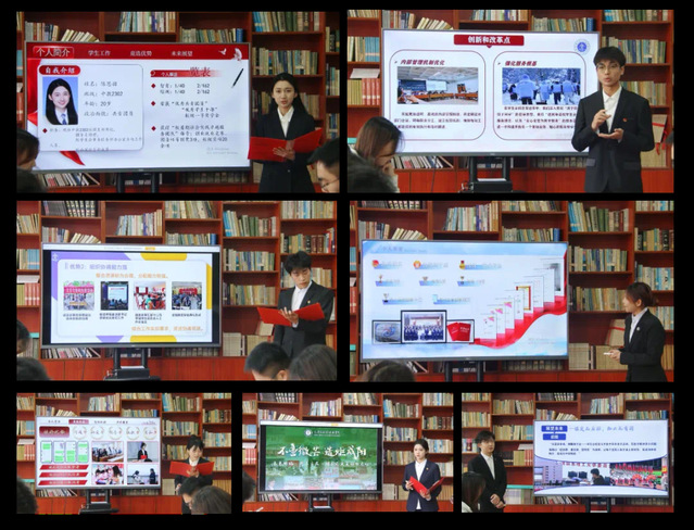 本次竞选严格遵循公平、公正、公开原则,候选人按抽签顺序依次进行展示答辩。通过PPT演讲,候选人围绕自我介绍、任职经历、个人优势、岗位认知及未来工作规划等方面展开陈述。在答辩环节,评委就竞选动机、工作优势、活动策划及应急处置能力等维度展开提问。竞选人应答思路清晰、逻辑严谨,评委通过针对性指导帮助候选人深化对岗位职责的认知,明确自身优势与发展方向。