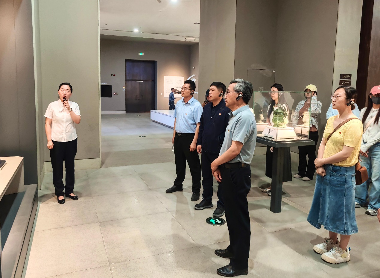 齐文化博物馆为国家一级博物馆,是国内规模最大的齐文化专题馆。其依托齐国故城遗址而建,集展陈、保护、研究于一体。在讲解员的带领下,党员们依次参观了“泱泱齐风”“稷下学宫”“齐地兵学”等主题展厅,从管仲“仓廪实而知礼节”中感悟育人需“育德为先”,在稷下争鸣“和而不同”里体会尊重学生差异的包容智慧,于兵法“因势利导”中领悟遵循规律施教的辩证思维。党员师生表示,此次参观深切感受到齐文化“开放包容、务实创新”与“立德树人”的共鸣,未来教师将以文化智慧为镜,践行关爱学生、循循善诱的担当,学生也将汲取历史养分,树立开放包容的学习态度,让文化内核成为师德建设与师生成长的滋养。
