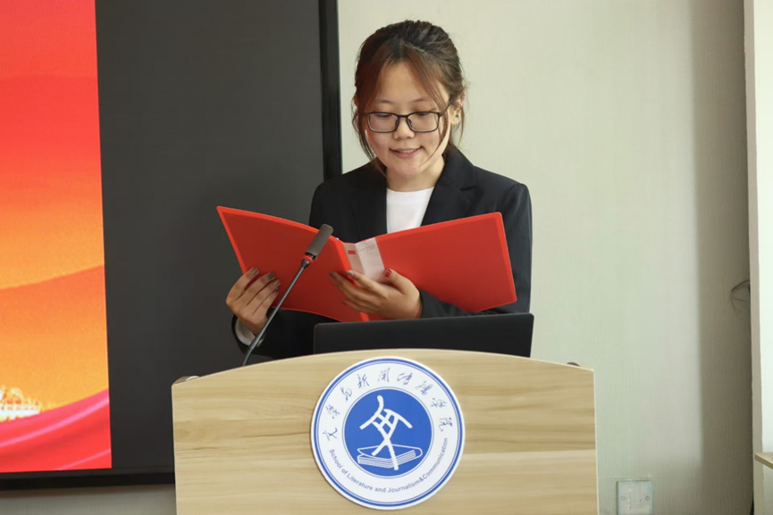 学生代表刘思羽发言。她表示,定会珍惜这难得的学习机会,以严肃认真的态度对待党课学习。她承诺将端正入党动机,严格以党员标准要求自己,积极学习并宣传党的方针政策,坚定确立共产主义信仰,主动深入学习党的理论知识,深刻领会习近平新时代中国特色社会主义思想的核心要义,以实际行动展现入党积极分子应有的先进性与纯洁性,以饱满的热情、全身心的投入完成党课学习,努力交出一份令人满意的答卷。