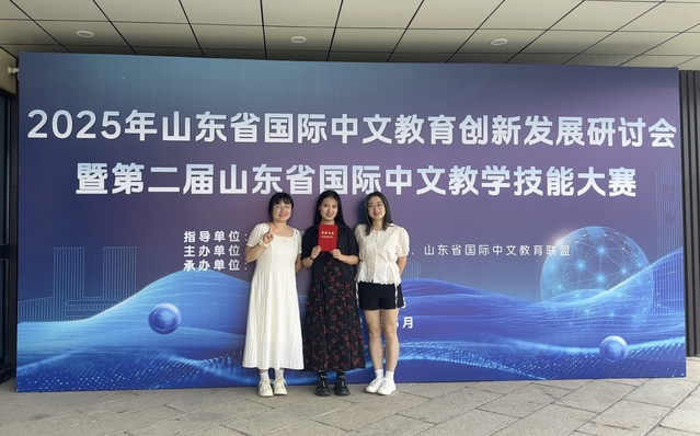 6月19日至21日,2025年山东省国际中文教育创新发展研讨会暨第二届山东省国际中文教学技能大赛在青岛大学成功举办。本次大赛由教育部中外语言交流合作中心和山东省教育厅指导,山东省教育国际交流协会主办,青岛大学承办。经学校初赛推选、复赛专家评审,本次大赛共选出教师组、本科生组、研究生组、国际学生组69支团队进入决赛,我院研究生刘昱孜、付佳琪、张玉敏,刘敏敏、王天甲,孟晞予、范成玲、张雪蕾,共三组团队进入决赛,并斩获佳绩。