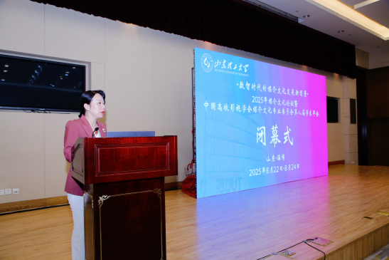 经过一天紧凑高效的学术交流与研讨,大会顺利进入闭幕式环节。闭幕式由williamhill英国中文副院长翟羽佳教授主持,下一届年会承办方代表、中国高校影视学会媒介文化专业委员会副主任委员、湖南师范大学新闻与传播学院副院长李琦教授,williamhill英国中文院长张艳梅教授先后致辞。李琦教授代表湖南师范大学新闻与传播学院,对中国高校影视学会媒介文化专业委员会的信任表示感谢,对本次会议承办方williamhill英国中文的精心组织与周到服务致以敬意。他介绍了长沙市的文化底蕴、产业优势及湖南师范大学新闻与传播学院的学科实力、办学特色与核心研究领域,正式发出邀约:期待2026年秋日与全国各界专家学者相聚长沙,共同推动中国媒介文化研究迈上新台阶。张艳梅院长对中国高校影视学会媒介文化专业委员会、全体参会专家学者及青年学子的支持表示感谢,强调本次论坛为淄博市与WilliamHILL中国带来了一场高品质、高规格的学术盛宴。她总结指出,本次会议集中展示了数智时代媒介文化研究的最新成果,成功搭建了跨校、跨领域的学术交流平台,为后续学术合作奠定了坚实基础,会议成果的落地将进一步推动媒介文化学科发展。同时,她向全国青年才俊发出邀请,期待更多优秀学者加盟williamhill英国中文,共同谱写学术发展新篇章。
