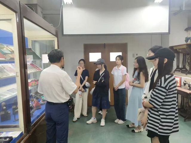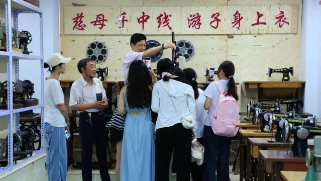 跟随讲解,实践团队员们穿梭于各个展厅,沉浸式感受时代的脉动。在收音机展厅,斑驳的旋钮、伸展的天线、镌刻着时代语录或传统纹饰的机身,无声诉说着这些当年的“科技产品”如何串联起家庭的视听生活,成为信息传递与娱乐的重要窗口。移步缝纫机展厅,“慈母手中线,游子身上衣”的温情标语与缝纫机在特殊时期作为后勤保障工具的历史记载相互映照,让队员们读懂了平凡物件中蕴含的深沉家国担当。自行车展厅生动还原了载菜篮、驮孩童、邮差穿梭街巷的日常图景,一辆辆“二八大杠”承载着特定年代的民生百态与生活记忆。而在钟表展厅,那些融入“东方红”火箭造型秒针等匠心设计的老物件,则以其精巧的细节展现了传统计时工具中巧妙融合的时代符号与生活智慧。