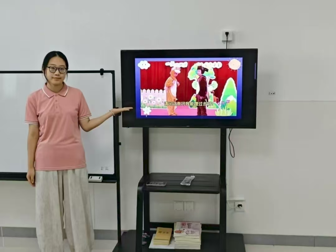 一年级一班的《小马过河》拉开了各班演出的序幕。课堂伊始,实践团用动画短片引出故事,带着孩子们梳理“小马要过河——询问老牛和松鼠——妈妈鼓励尝试——小马成功过河”的情节线。在角色分配上,采用“自主选角+鼓励尝试”模式,活泼的孩子争当“小马”“老牛”“松鼠”,稍内向的孩子也被动员扮演“小草”“河流”等,全员参与让教室瞬间热闹起来。实践团成员借助课本剧片段,逐帧讲解“小马犹豫是否过河”“最终尝试过河”等关键情节,引导孩子发现细节,帮孩子梳理故事逻辑,弄懂其中蕴含的“自己尝试才知道结果”的道理。