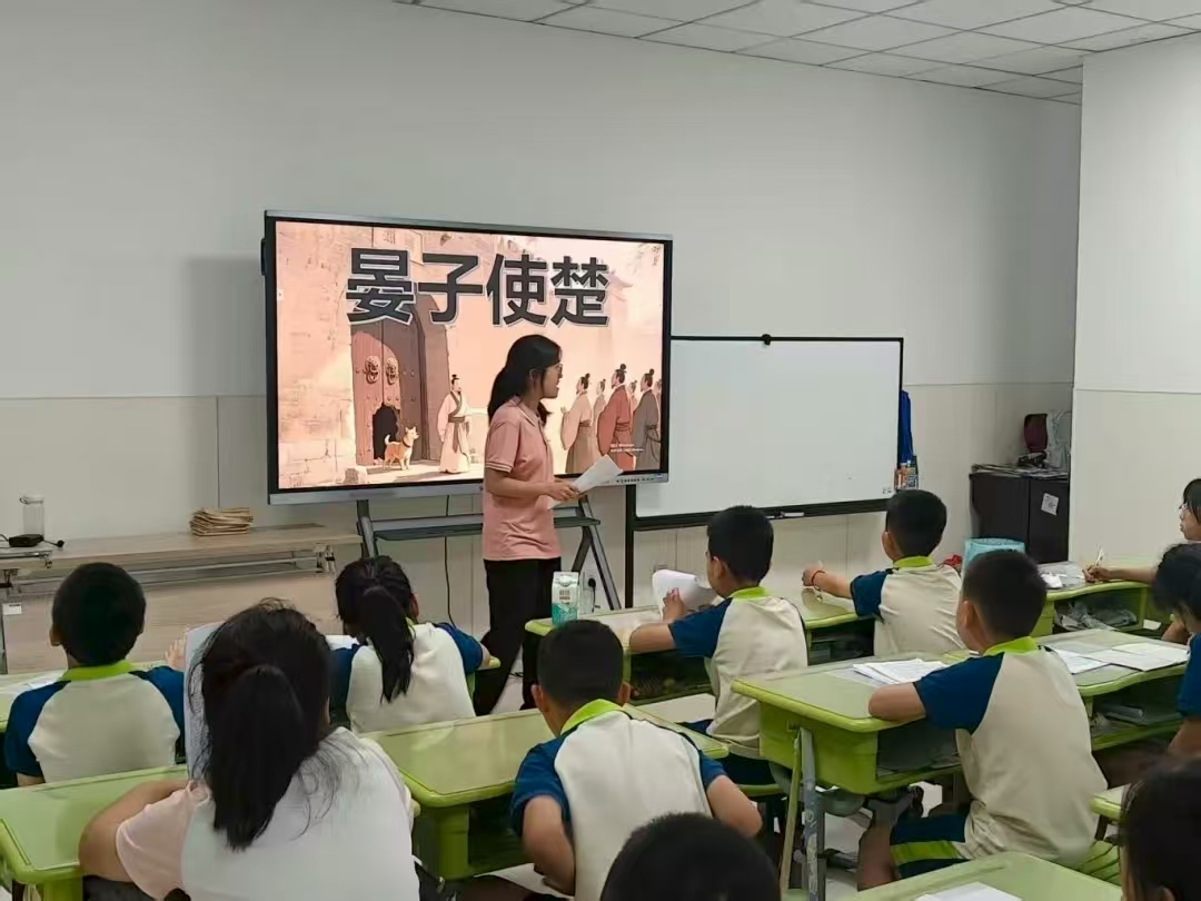 综合班的《晏子使楚》和《草船借箭》则展现出不一样的风采。考虑到综合班孩子的年龄和理解能力,实践团成员在故事讲解上更加细致,梳理出清晰的情节线。在角色分配时,让孩子们根据自己的兴趣选择“晏子”“楚王”“诸葛亮”“周瑜”等角色,稍内向的孩子也能找到适合自己的角色。