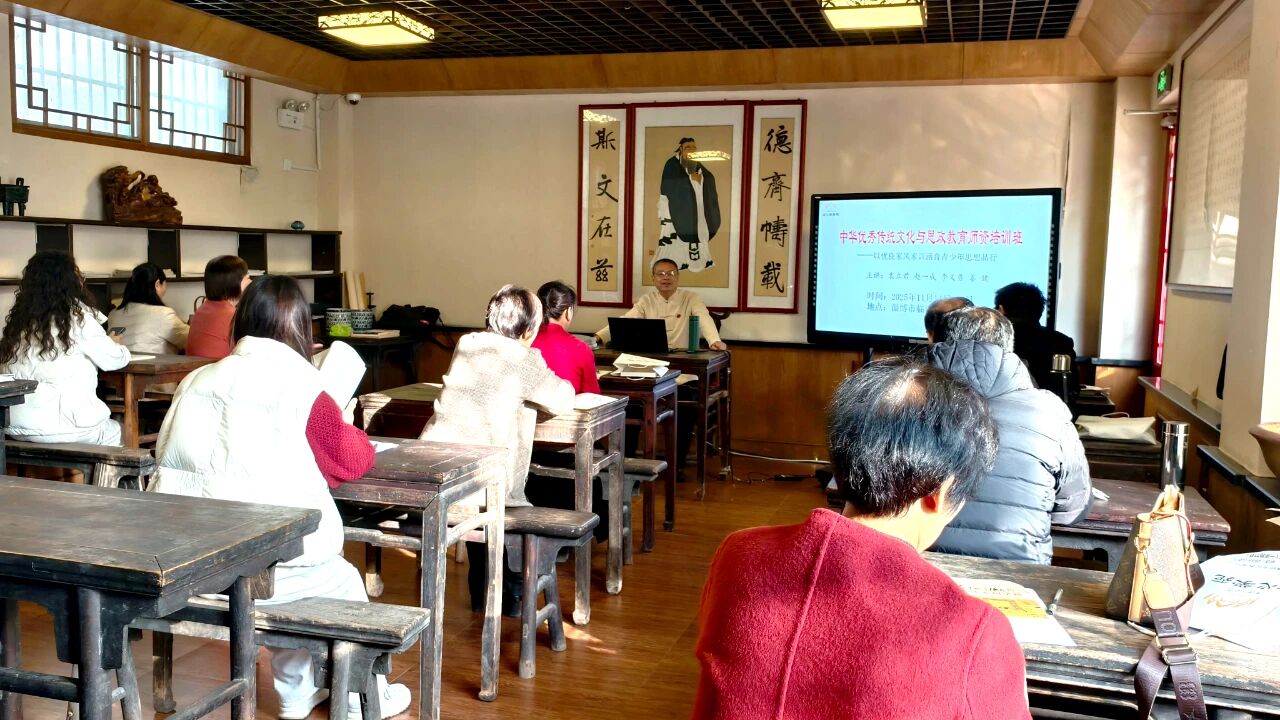2025年11月14日-16日,淄博正心国学院第三十期《中华优秀传统文化与思政教育》专题师资培训班在临淄一中闻韶书院举办。来自新疆乌苏市第五中学、辽宁大连连大职业技术学校、山东烟台、无棣县职业中专、淄博工业学校、临淄一中、闻韶书院小学、皇城镇中心学校的德育和思政教师骨干以及部分传统文化爱好者参加培训。