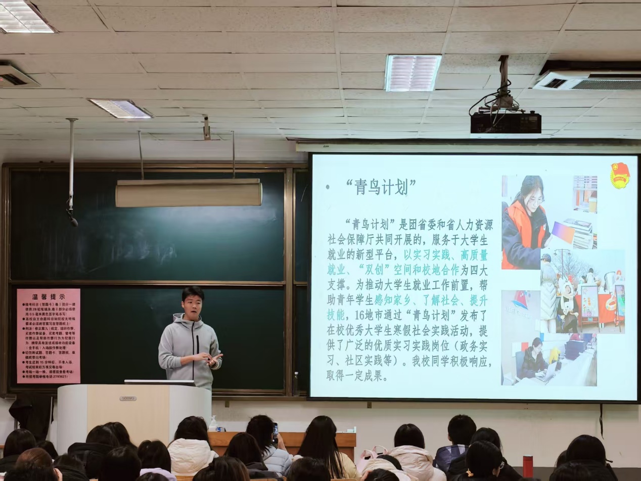 为有序推进2026年寒假社会实践工作,115日,我院于2号教学楼208教室顺利举行2026年寒假社会实践培训会。本次培训会由辅导员邢翔宇主持并担任主讲,各实践团队负责人参会。