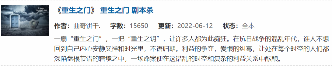 作品九:《重生之门》 重生之门 剧本杀