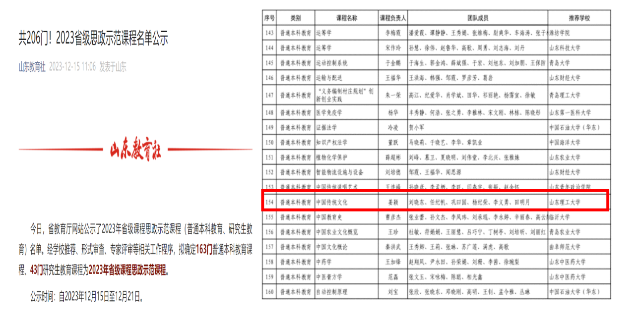 《中国传统文化与人生修养(修订版)》获批山东省高等教育一流教材