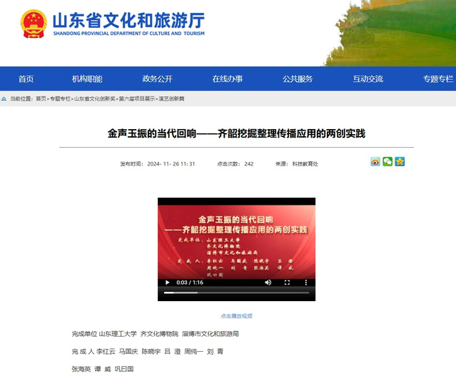 金声玉振的当代回响——齐韵挖掘整理传播应用的两创实践荣获第六届山东省文化创新奖